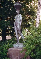 Fotos: Nebengebäude des Löbtauer Rathauses (links) - Danaide-Figur im Park (rechts)