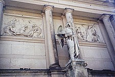 des Neorenaissance-Baus war der Semper-Schüler Robert Wimmer; der plastische Schmuck (Foto links) stammt von Martin Engelke.