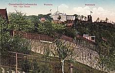 Areal mit verschiedenen Attraktionen, Aussichtsterrassen und der künstlichen Ruine Wettinturm ausstatten. In den Gasträumen waren Vitrinen mit frühgeschichtlichen Funden der Umgebung und einem